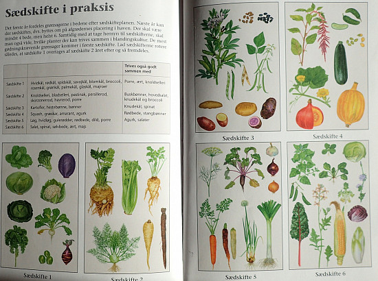 Sædskifterne følger dem i bogen »Økologisk have« ved Jens Juhl og Sølva Falgren, og oversigten over sædskifterne vises nedenfor.